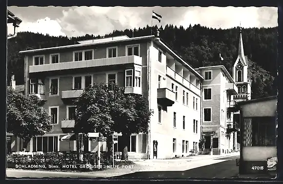 AK Schladming, Strassenpartie mit Gebäudeansicht