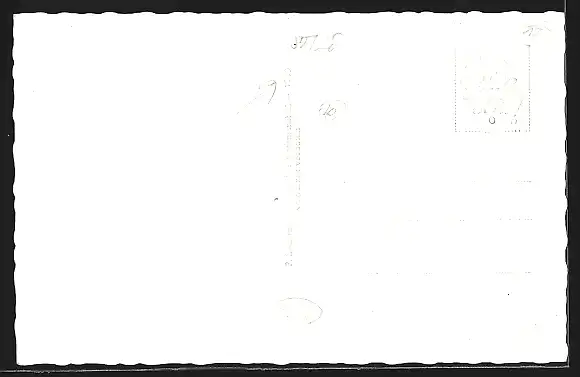 Personenbezogene Daten auf der Rückseite der Karte wurden durch blauen Textmarker unkenntlich gemacht. Die blauen Stellen sind auf die Vorderseite durchgeweicht und wirken sich negativ auf das Postkartenfoto aus