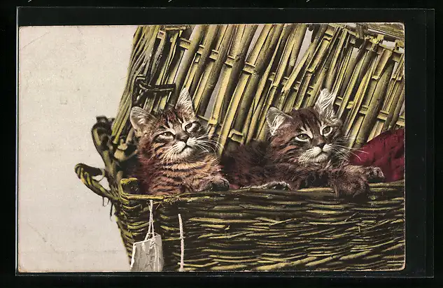 AK Schläfrige Katzen in einem Korb