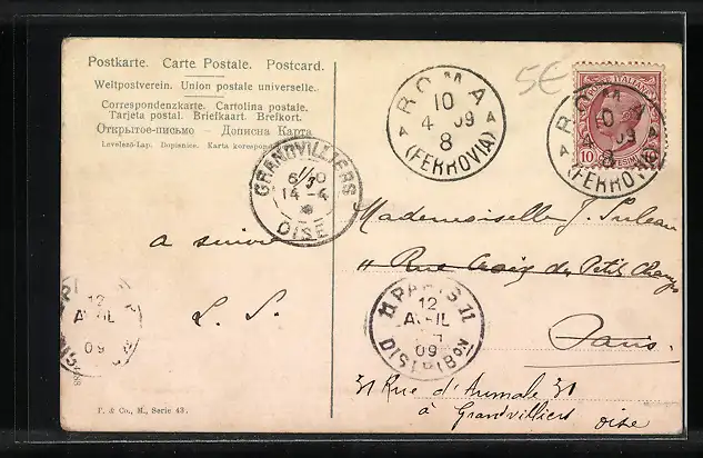 alte Ansichtskarte, gelaufen 1909, Eckknick li. oben, guter Zustand