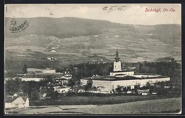 AK Schlägl /Ob.-Oe., Ortsansicht mit dem Stift