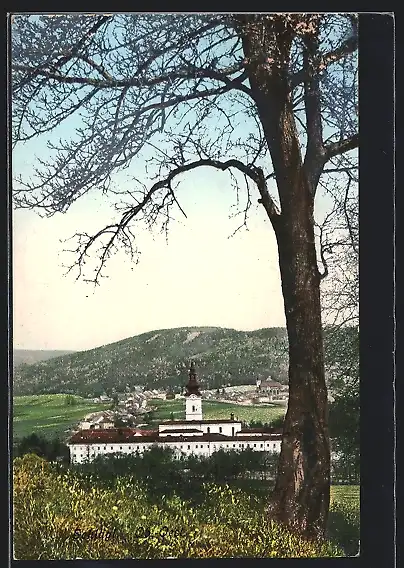 AK Schlägl /Ob.-Oest., Ortsansicht mit Kirche