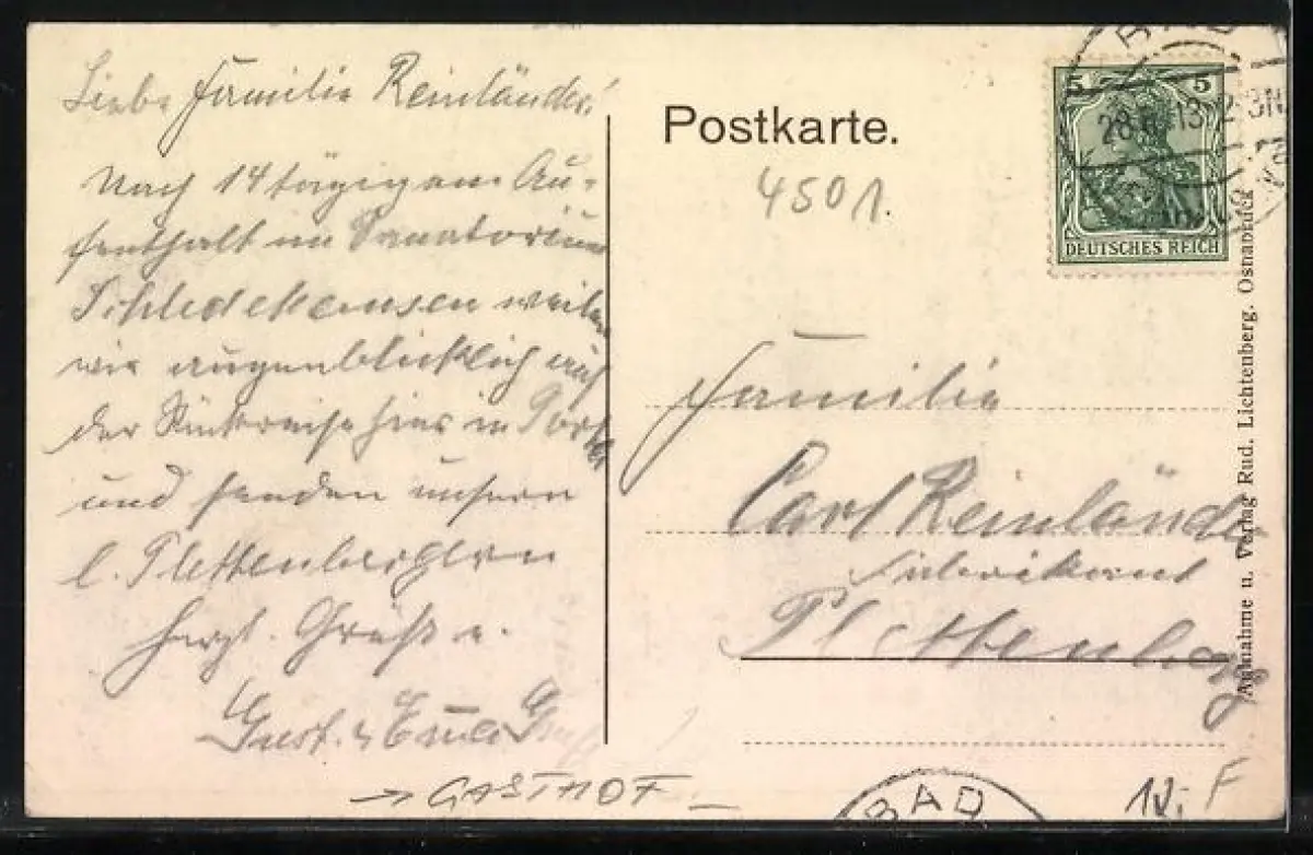 alte Ansichtskarte, gelaufen 1913, Eckknick rechts unten, guter Zustand