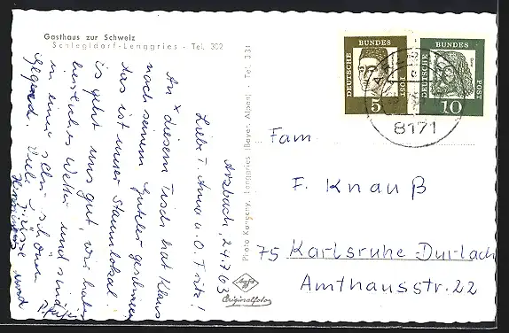 alte Ansichtskarte, gelaufen 1963, guter Zustand