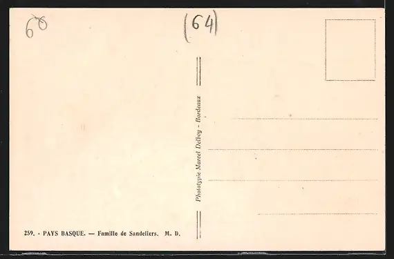 Personenbezogene Daten auf der Rückseite der Karte wurden durch blauen Textmarker unkenntlich gemacht. Die blauen Stellen sind auf die Vorderseite durchgeweicht und wirken sich negativ auf das Postkartenfoto aus