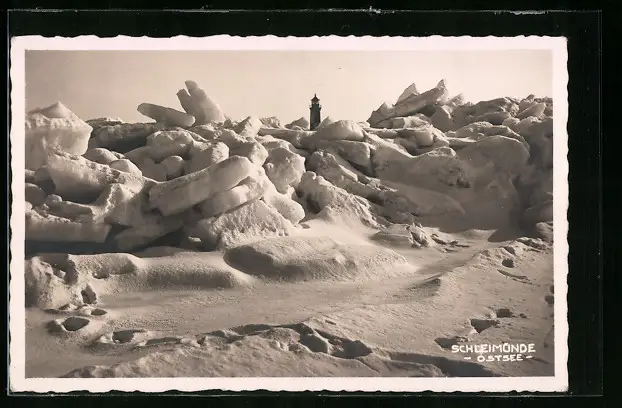 AK Schleimünde, Leuchtturm im Schnee, Unwetter