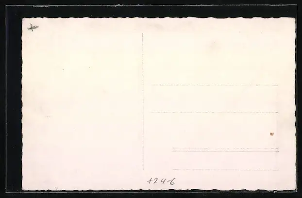 Personenbezogene Daten auf der Rückseite der Karte wurden durch blauen Textmarker unkenntlich gemacht. Die blauen Stellen sind auf die Vorderseite durchgeweicht und wirken sich negativ auf das Postkartenfoto aus