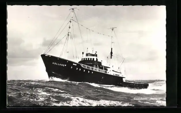 AK Schlepper Holland in stürmischer See