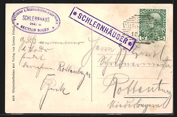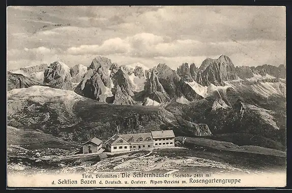 AK Schlernhäuser, Ansicht mit Gebirgspanorama