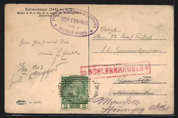 AK Schlernhäuser, Bozen gegen die Rosengarten-Dolmiten