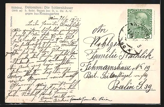 AK Schlernhäuser in den Dolomiten, Ansicht gegen den Rosengarten