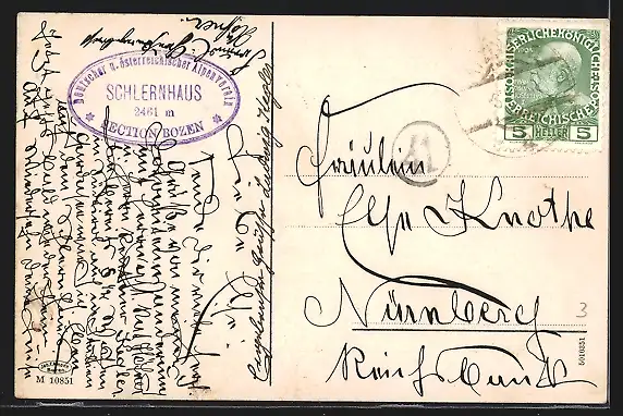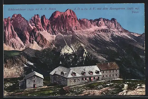 AK Schlernhaus, Ansicht mit den Rosengarten