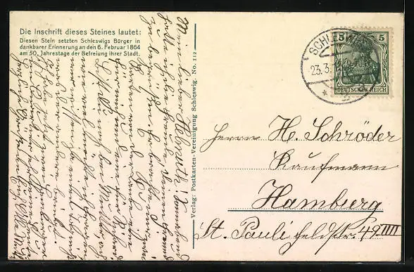 AK Schleswig, Strassenpartie am Befreiungsdenkmal