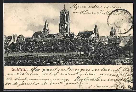 AK Schlettstadt, Ortsansicht mit Kirchen