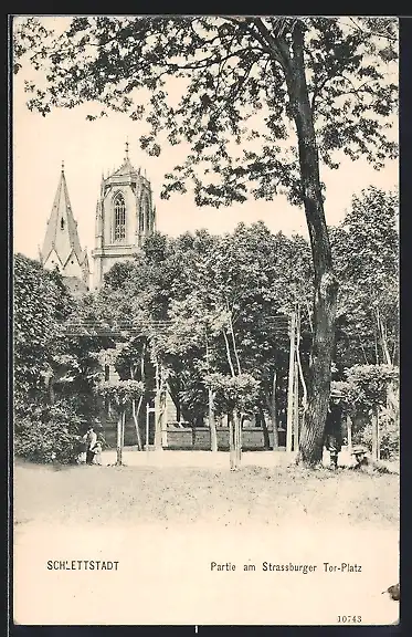 AK Schlettstadt, Partie am Strassburger Tor-Platz
