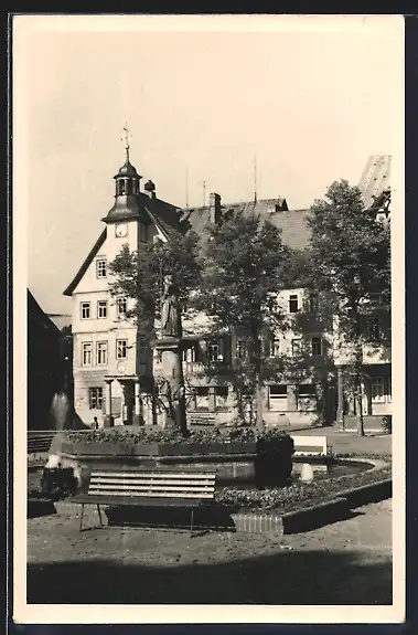 AK Schleusingen /Thür., Rathaus mit Marktbrunnen