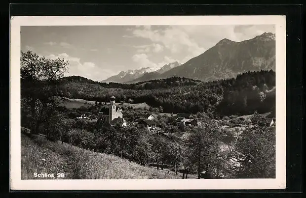 AK Schlins, Panorama vom Berg aus gesehen