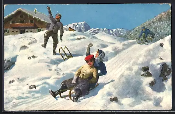 AK Schlittenfahrt in den Alpen
