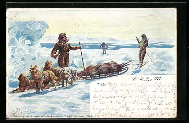 AK Schlittenhunde bei einer Expedition im Eis