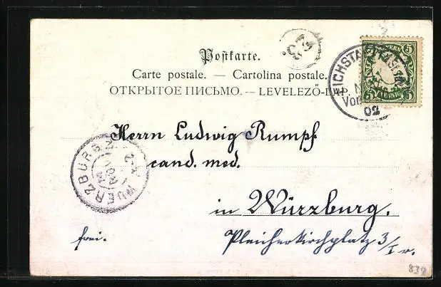 alte Ansichtskarte, gelaufen 1902, guter Zustand