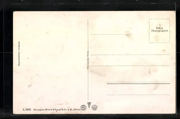 Personenbezogene Daten auf der Rückseite der Karte wurden durch blauen Textmarker unkenntlich gemacht. Die blauen Stellen sind auf die Vorderseite durchgeweicht und wirken sich negativ auf das Postkartenfoto aus