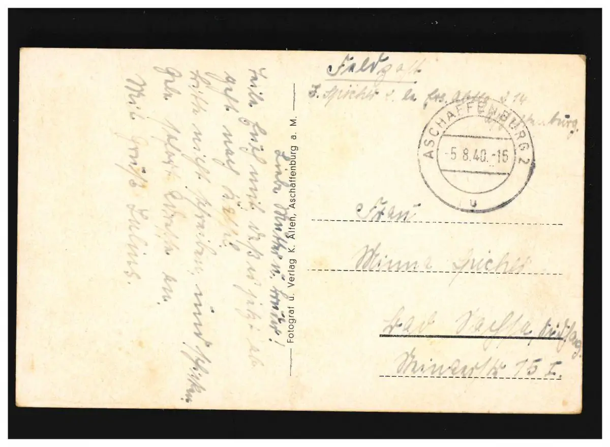 AK Schloss Aschaffenburg am Main, Feldpost, Aschaffenburg 5.8.1940