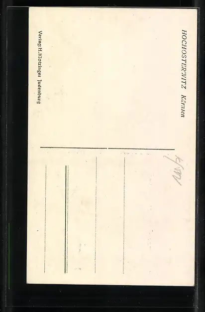 Personenbezogene Daten auf der Rückseite der Karte wurden durch blauen Textmarker unkenntlich gemacht. Die blauen Stellen sind auf die Vorderseite durchgeweicht und wirken sich negativ auf das Postkartenfoto aus