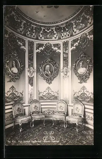 Personenbezogene Daten auf der Rückseite der Karte wurden durch blauen Textmarker unkenntlich gemacht. Die blauen Stellen sind auf die Vorderseite durchgeweicht und wirken sich negativ auf das Postkartenfoto aus