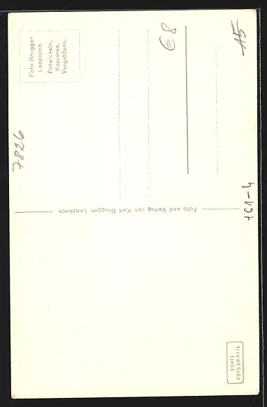Personenbezogene Daten auf der Rückseite der Karte wurden durch blauen Textmarker unkenntlich gemacht. Die blauen Stellen sind auf die Vorderseite durchgeweicht und wirken sich negativ auf das Postkartenfoto aus