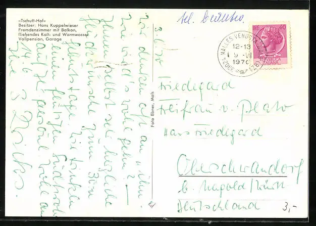 alte Ansichtskarte, gelaufen 1970, guter Zustand
