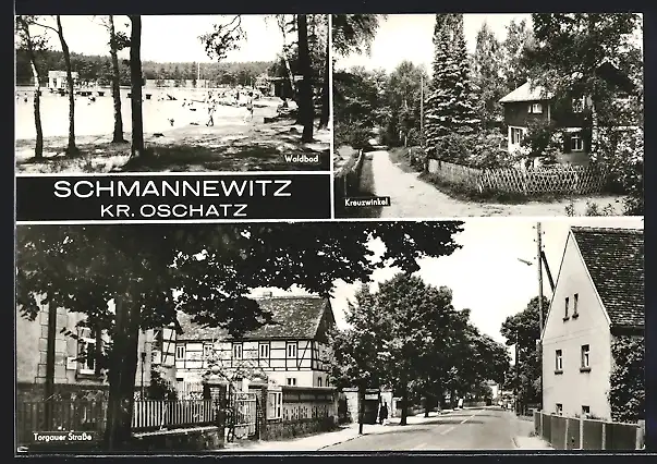 AK Schmannewitz /Oschatz, Torgauer Strasse, Waldbad