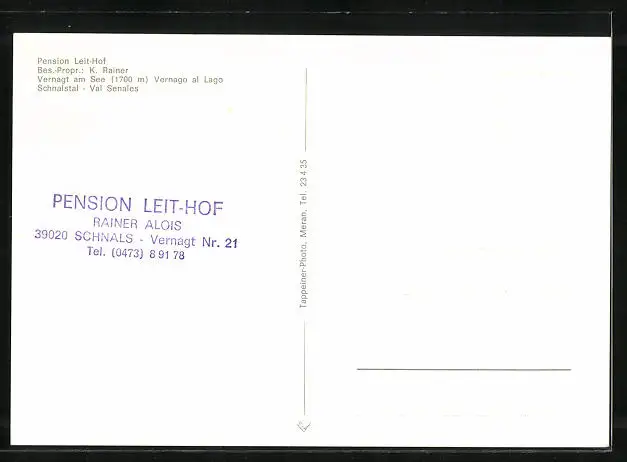 AK Schnals, Hotel-Pension Leit-Hof, Vernagt Nr. 21