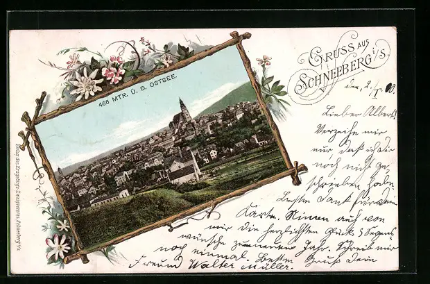 AK Schneeberg i. S., Gesamtansicht mit Kirche