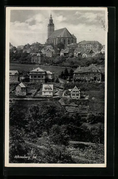 AK Schneeberg i. Sa., Teilansicht mit Kirche