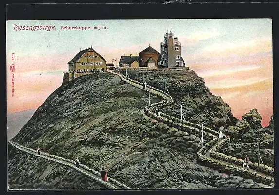 AK Schneekoppenhäuser im Abendrot