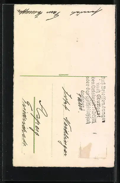 alte Ansichtskarte, gelaufen, Briefmarke entfernt, rückseitig Oberflächenschaden, guter Zustand