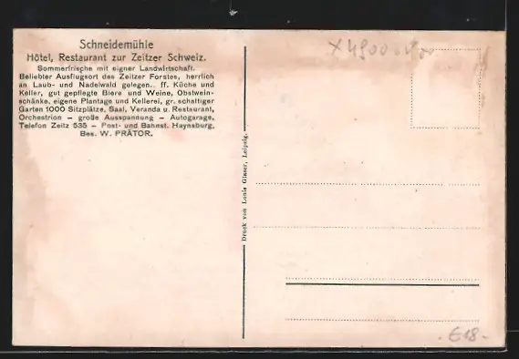 AK Schneidemühle, Hotel-Restaurant zur Zeitzer Schweiz