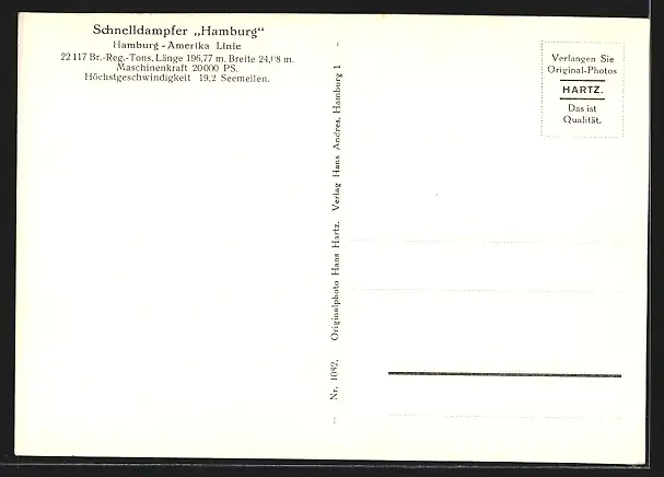 AK Schnelldampfer Hamburg der Hamburg-Amerika Linie