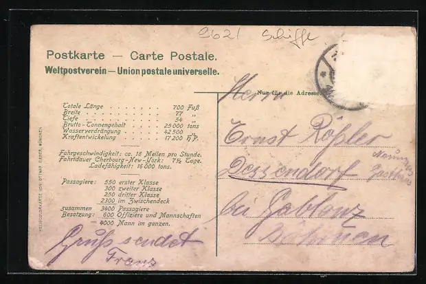 AK Schnelldampfer Kaiserin Auguste Victoria, Passagierschiff