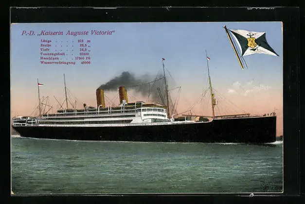 AK Schnelldampfer Kaiserin Auguste Victoria heizt die Kessel an