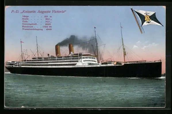 AK Schnelldampfer Kaiserin Auguste Victoria heizt die Kessel an