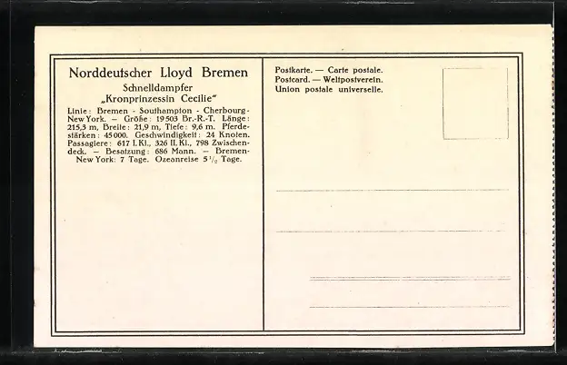 AK Schnelldampfer Kronprinzessin Cecilie des Norddeutschen Lloyd