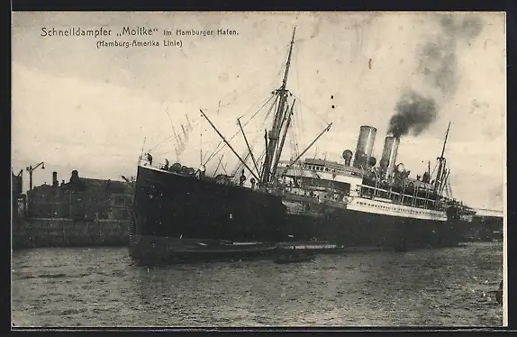 AK Schnelldampfer Moltke im Hamburger Hafen