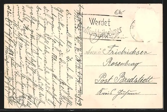 alte Ansichtskarte, gelaufen, Briefmarke entfernt, rückseitig Oberflächenschaden, guter Zustand