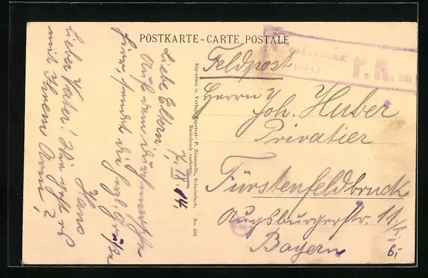 alte Ansichtskarte, gelaufen 1914, Abriebspur, guter Zustand