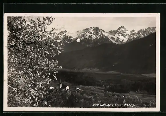AK Schnifis, Ortspartie mit Kirche und Bergen