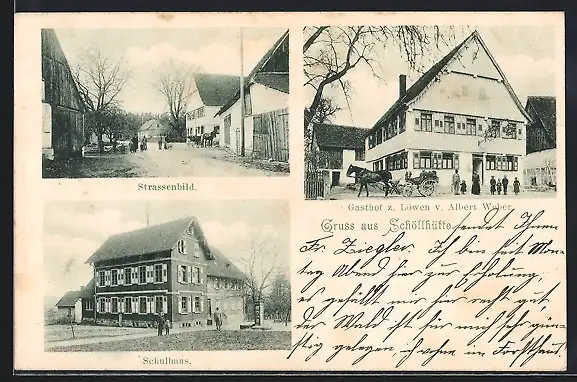 AK Schöllhütte, Gasthof z. Löwen A. Weber, Strassenpartie, Schulhaus