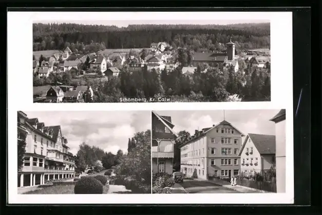 AK Schömberg Kr. Calw, Ortsansicht und zwei Ansichten aus der Stadt