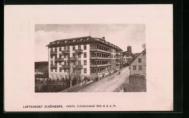 AK Schömberg /Wütt. Schwarzwald, Strassenpartie mit Gebäudeansicht