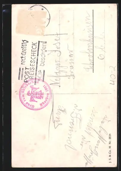 alte Ansichtskarte, gelaufen, Briefmarke entfernt, Stempelspur, guter Zustand